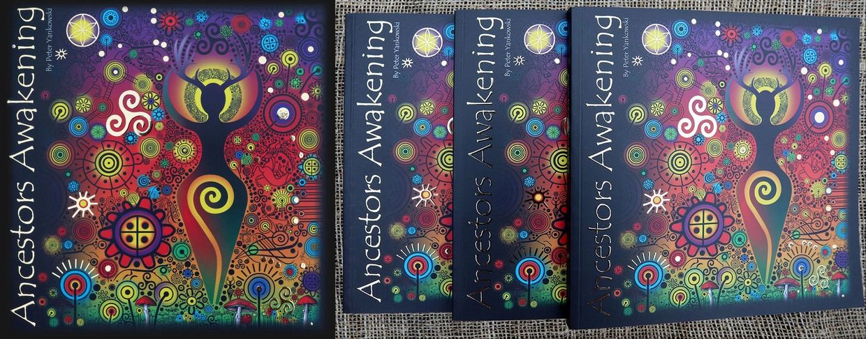 The book 'Ancestors Awakening' covers an eight-year journey and contains beautiful full-page layouts of my artwork, with patterns inspired by Neolithic symbolism, myth, legend, archetypal figures, megaliths, visits to ancient places, and ancestral energy. This is a unique collection of work developed along with written narratives, around the theme 'Ancestors Awakening'.